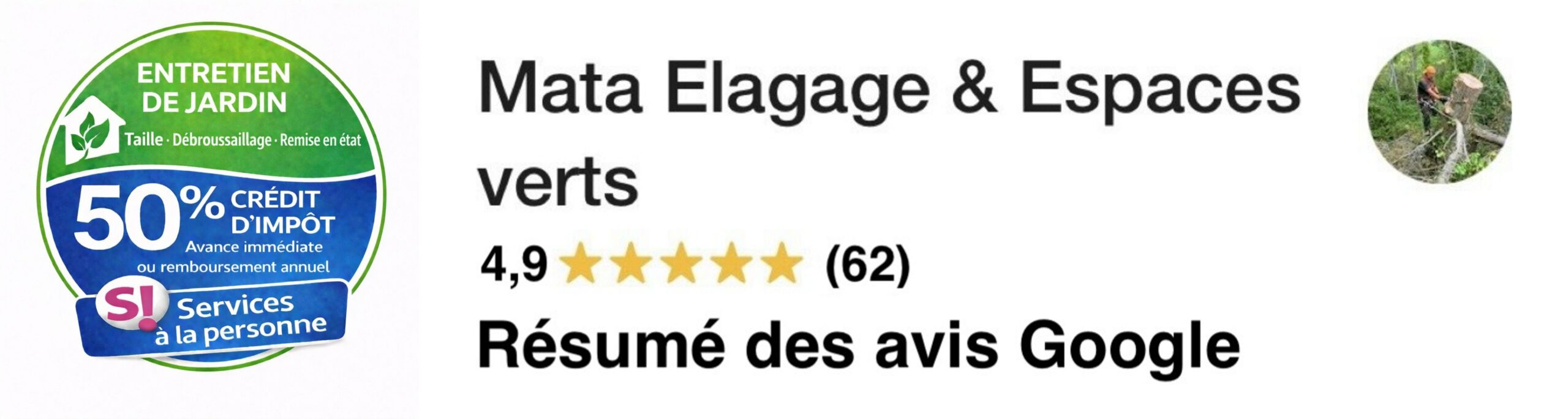 Monsieur Mata est intervenu avant et après la tempête pour deux énormes cyprès.Travail très sérieux, Monsieur honnête et très agréable. Mon mari et moi avons fait confiance sans hésitation et nous avons eu raison. Merci pour tout.