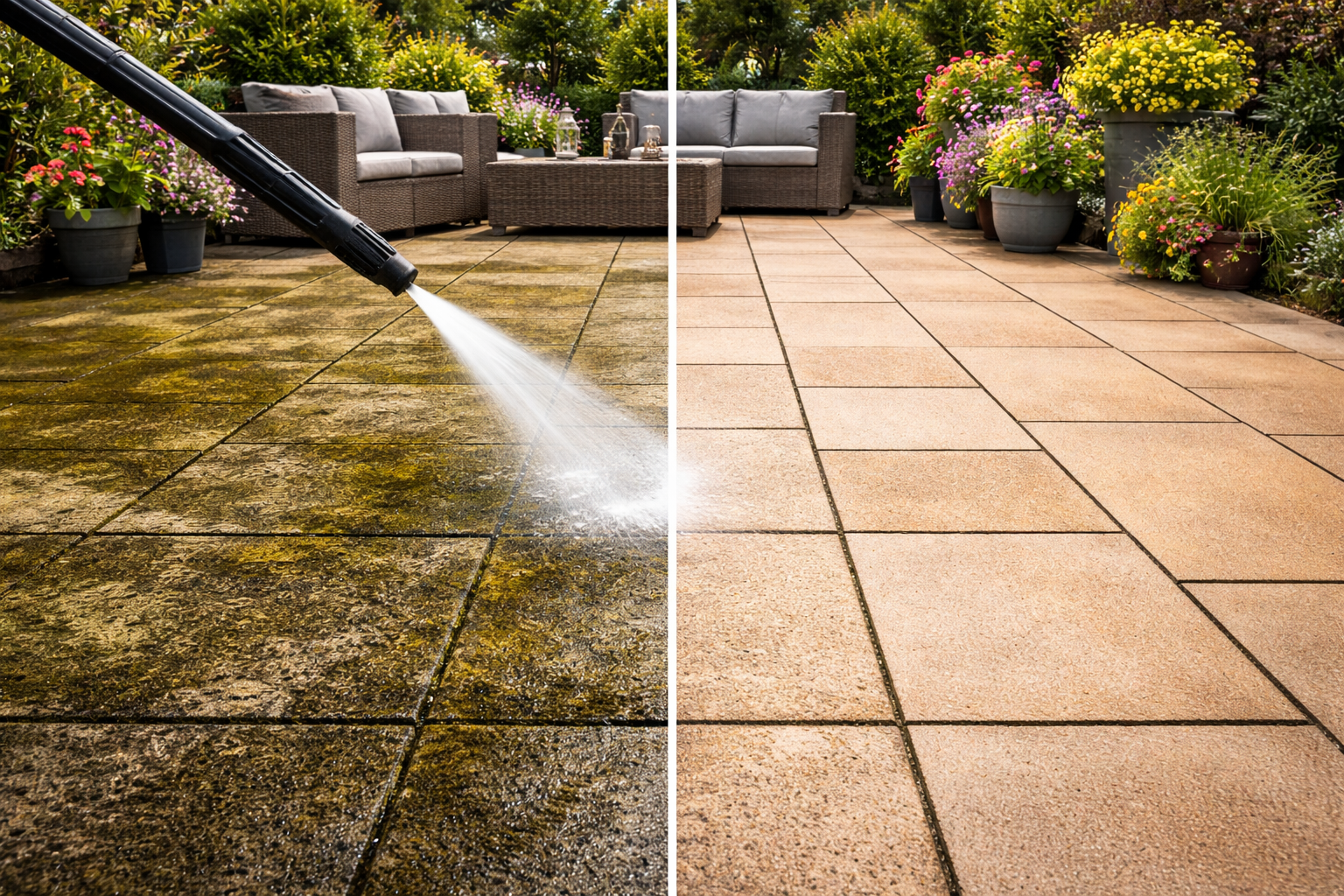 🧱 Nettoyage de terrasses en béton, pierre naturelle, carrelage ou dallage