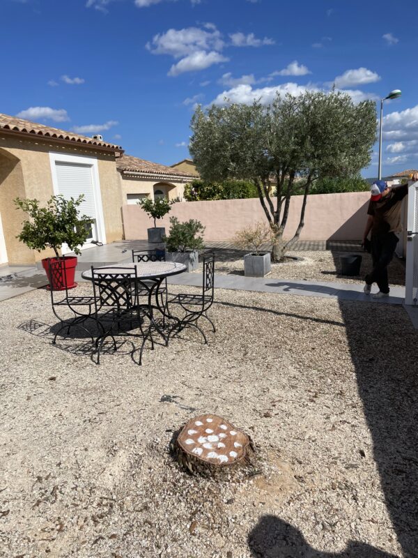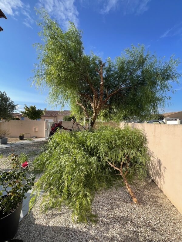 Arbre abattu à la demande de la cliente pour libérer l’espace dans son jardin.