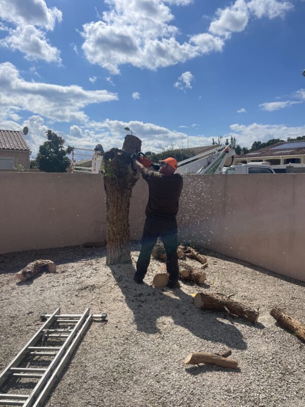 Arbre abattu à la demande de la cliente pour libérer l’espace dans son jardin.